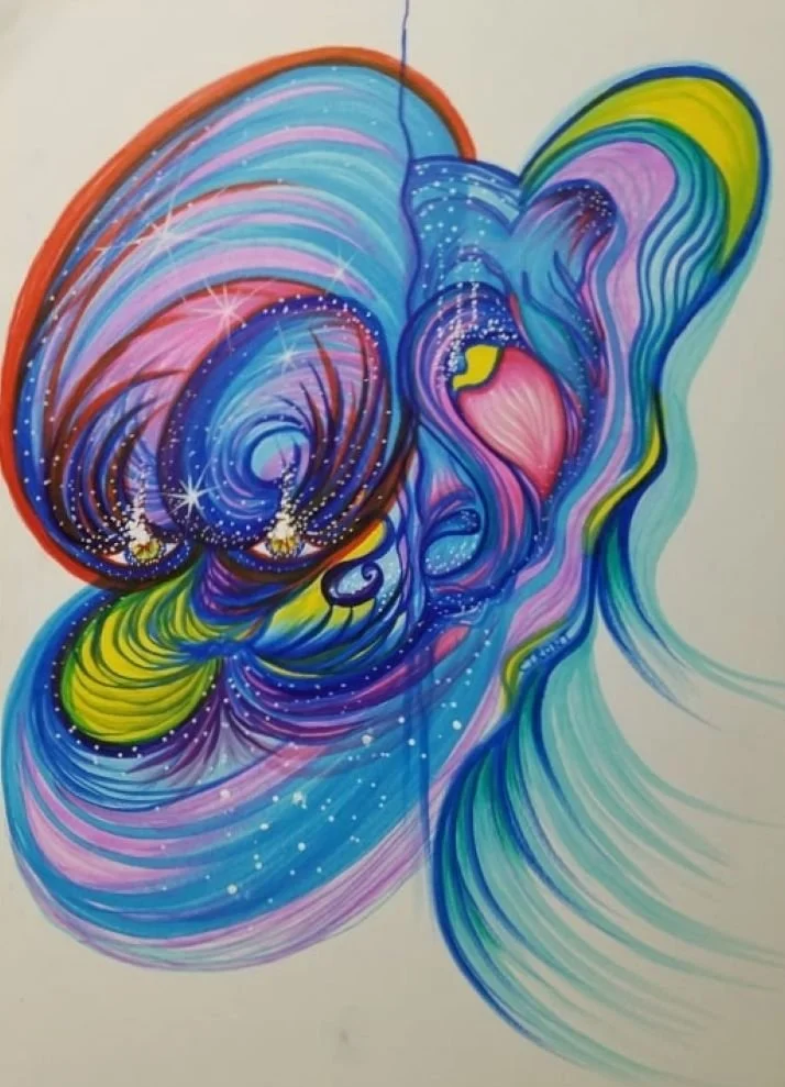 I'm standing in this canyon. It's 3:00 am. My husband knows where the echoes are. We call into the cliff and feel the echoes. He knows this place. They sound different this night. Five echoes push through the Canyons while we howl our signature wolf howls. But this night the echoes howled back in a sound that can only be described as a vortex. A whirly sound. A science fiction sounding frequency. How can I explain this experience? Only with the colors of my imagination.... the colors of the frequency… Can you see the beautiful Sedona energy?